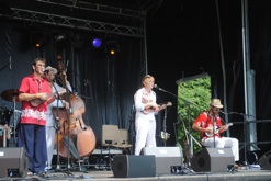 But what and why? Our neighbour spotted the event an ‘anglo-info’ and it appears to be conceived by the English. They were English in the car park, English on the gate, and most groups spoke English too. We did rather enjoy the first band (of 4, pictured left) who came on. They spoke in English and French with equal felicity and appeared a little uncertain what to major in! They played some very old styles which the rather older generation audience (mostly pensioners, all-be-it some in hippy style) seamed to enjoy.