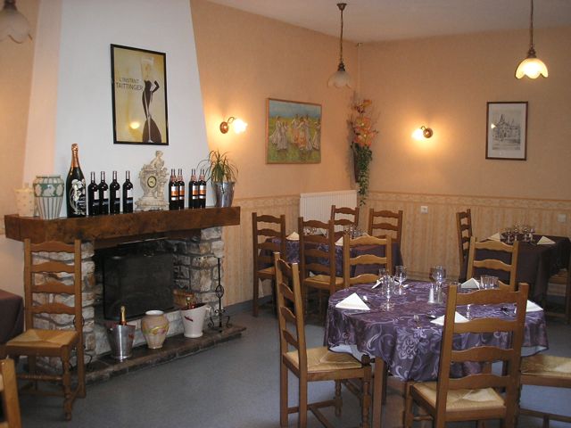 The restaurant is spacious and cozy, the room being sited away from the main area at the front of the hôtel. Enjoy a simple meal or select à la carte; the menu has local produce when available.